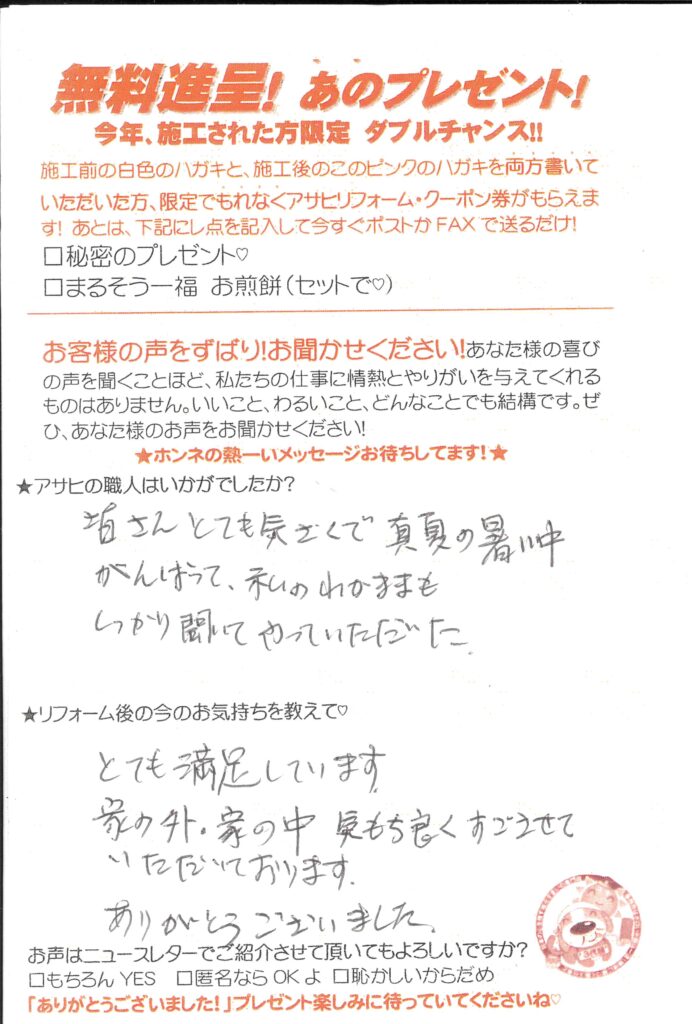 ずい分前になりますが友達がアサヒさんにお願いしてとても良かった。この事が私の頭に残っていた。