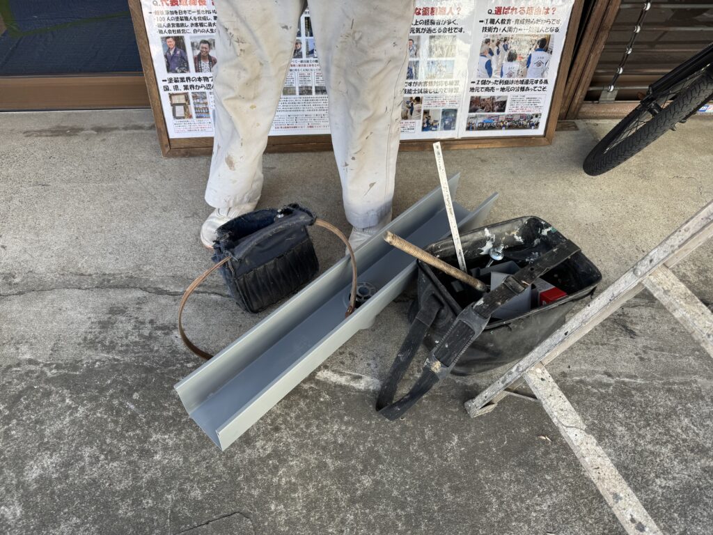 ⇧その前に!雨樋塗装時に雨樋の一部が壊れているのを確認していましたので交換部材を発注し、届きましたので先に交換していきます( ゚Д゚)