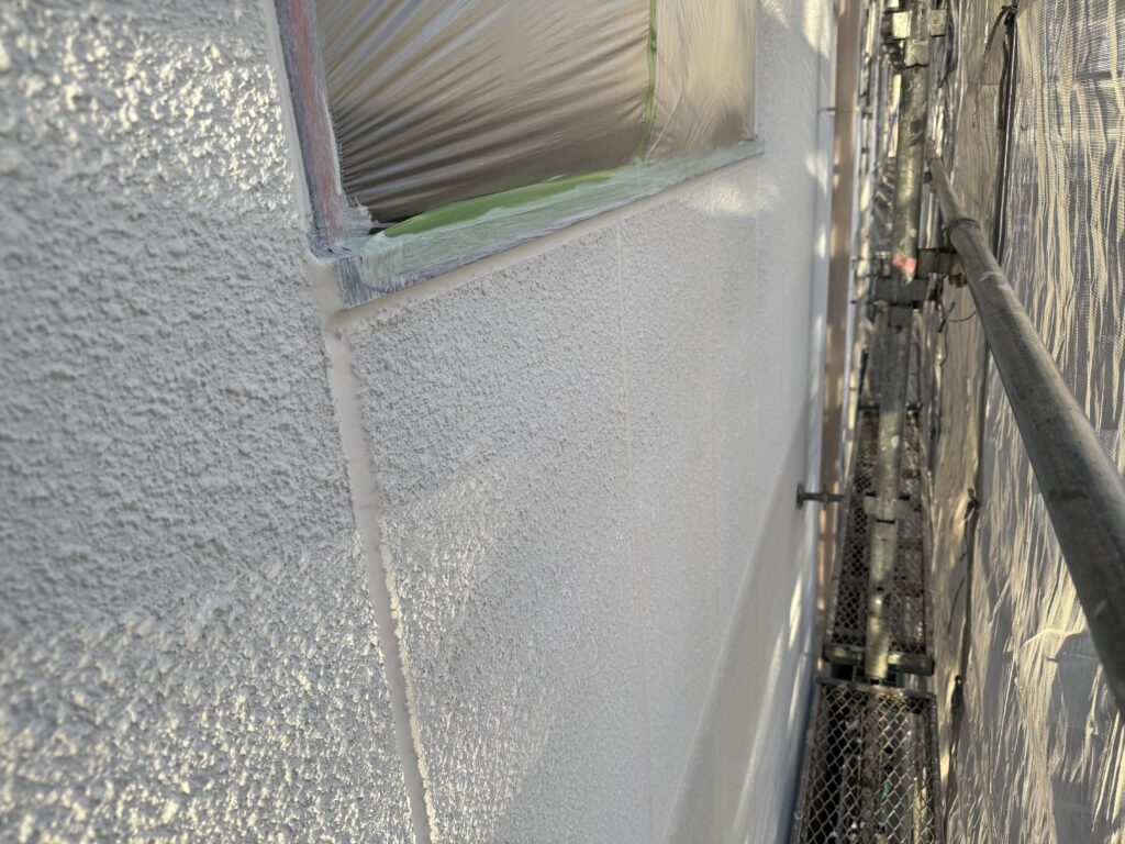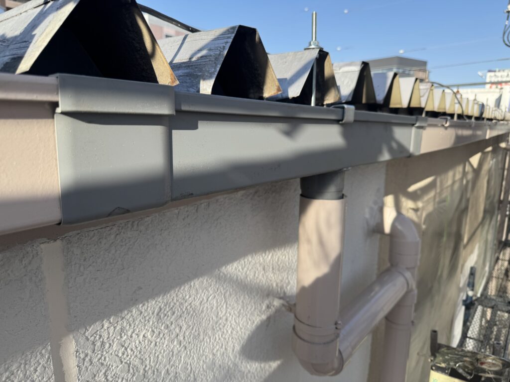 この中塗りも雨樋同様、上塗りとは少し違う色を塗装して塗り残し防止の施工をしております♪