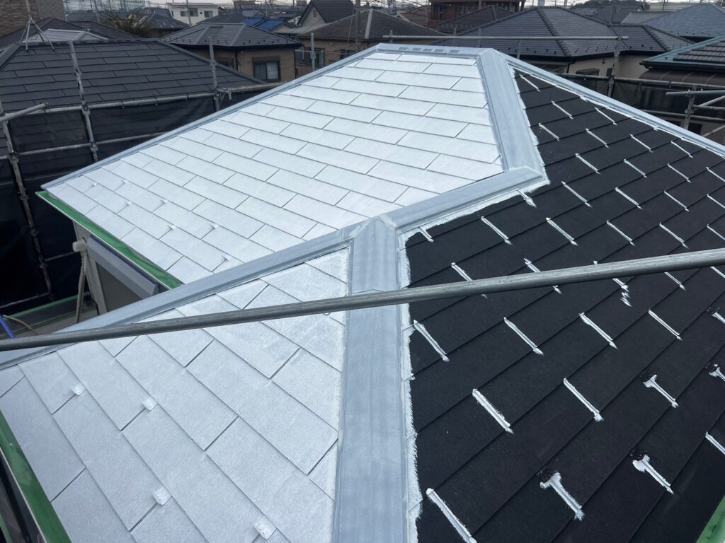 屋根塗装は、ここが大事なポイントです。 屋根塗装、外壁塗装ともに、【下塗り】が最も大切になります。 下塗りが、ちゃんと厚みがついているか、それは、塗っている職人の腕と。。。。。