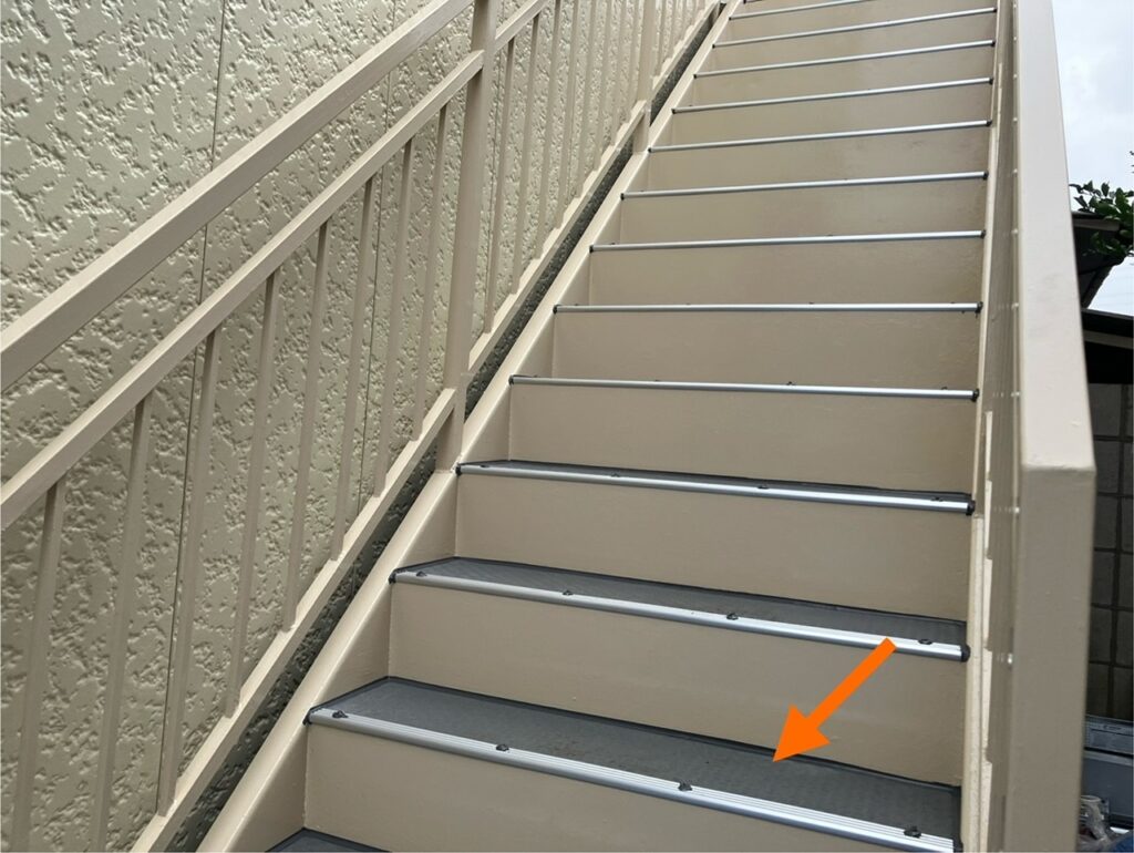 ☟ 鉄骨階段 長尺シート・滑り止めビス部分のシーリング施工