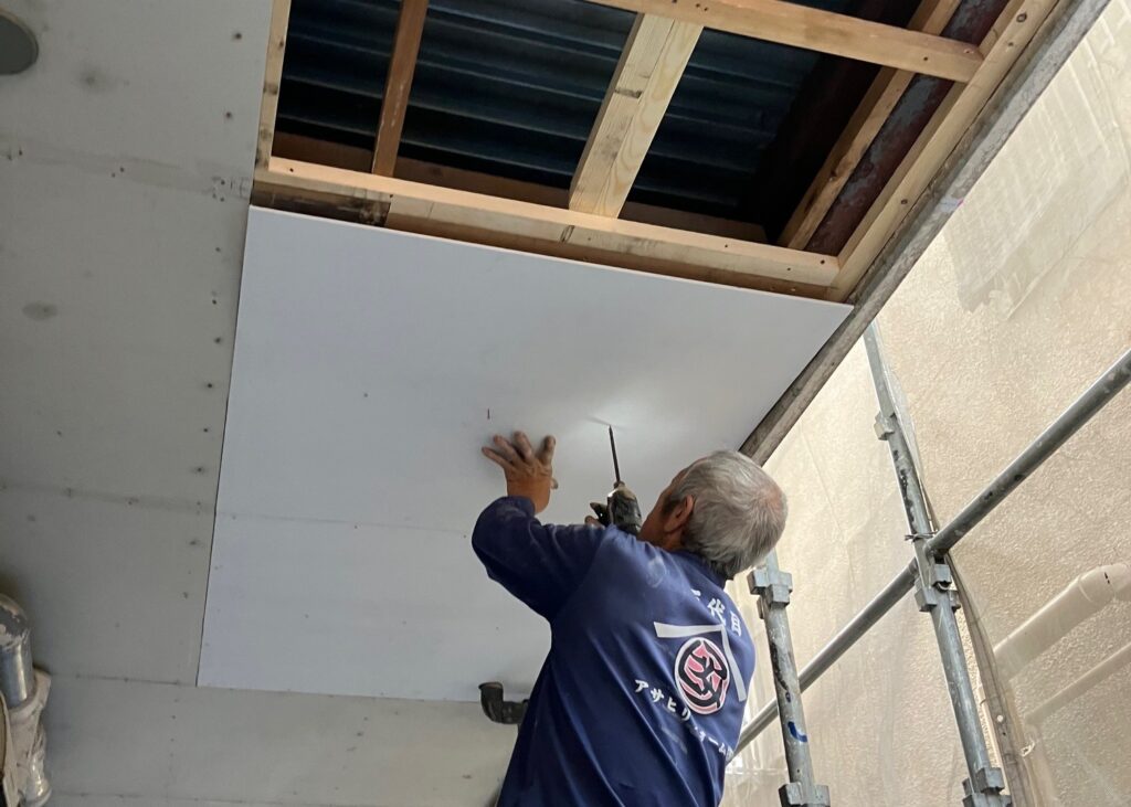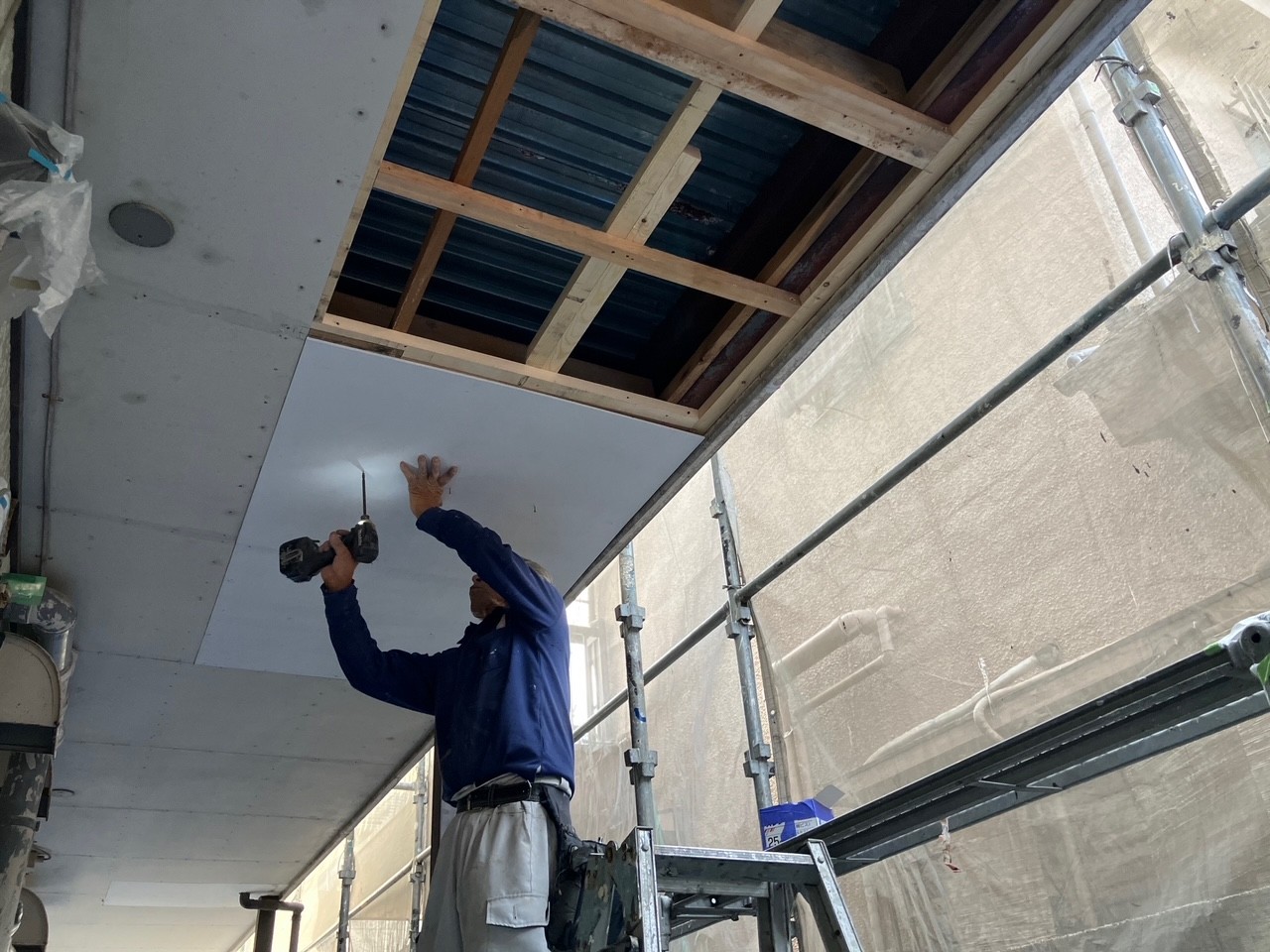 腐ってしまった軒天は大工さんに交換してもらいます🪚
