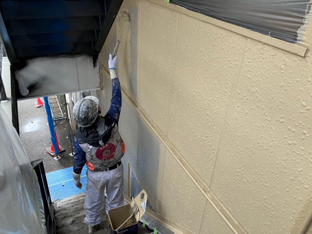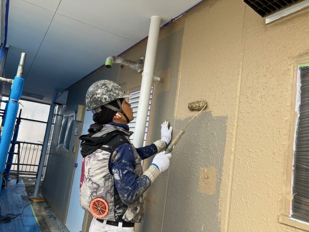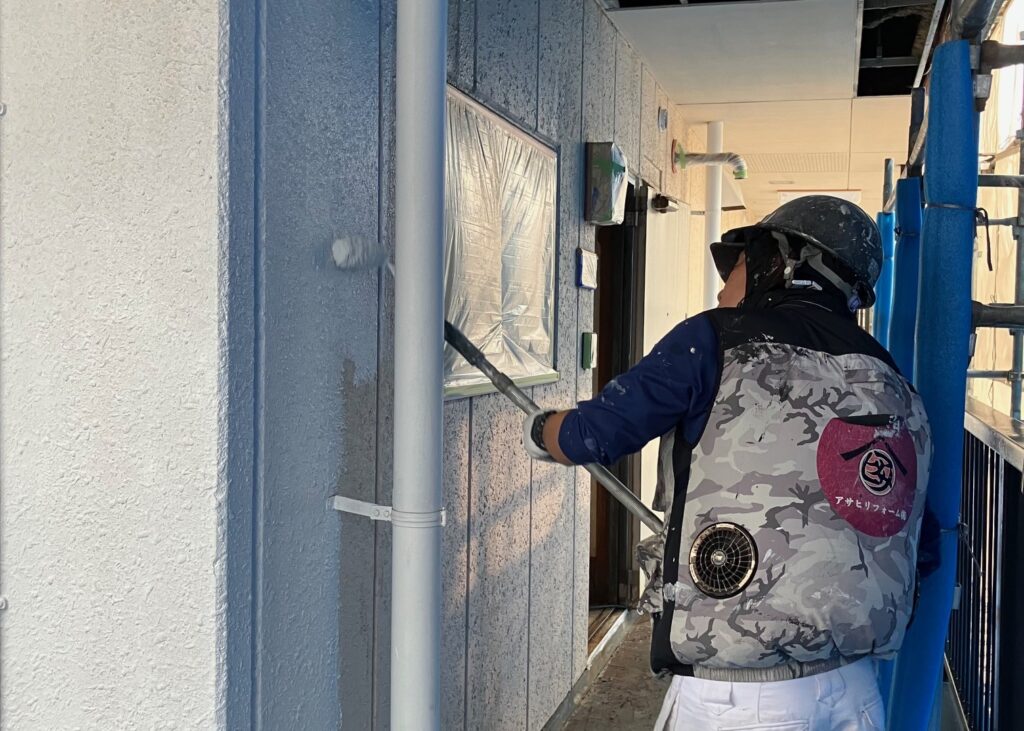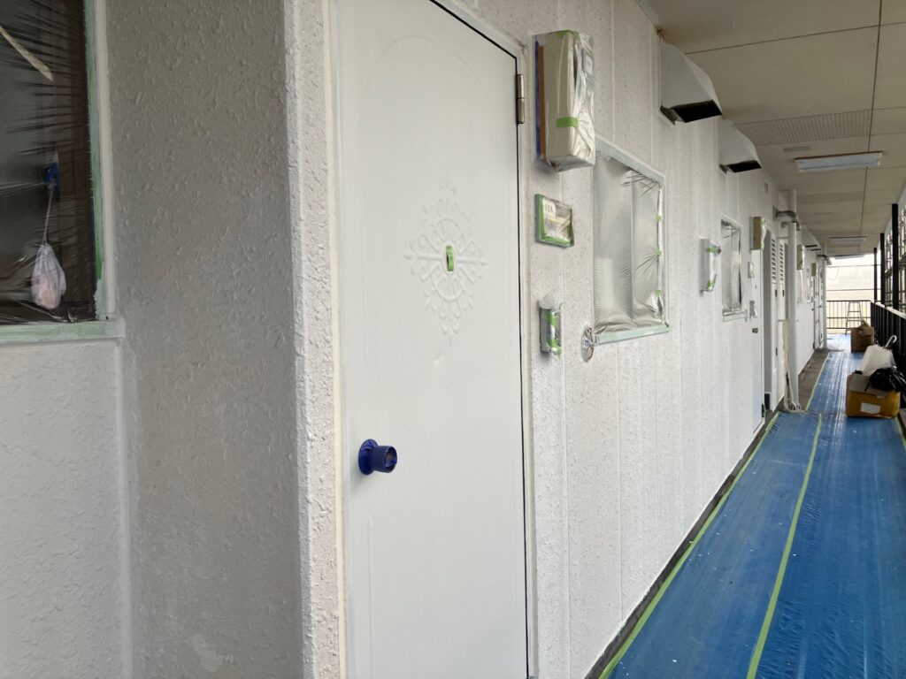 マンション塗装、共用廊下の塗装に入りました。