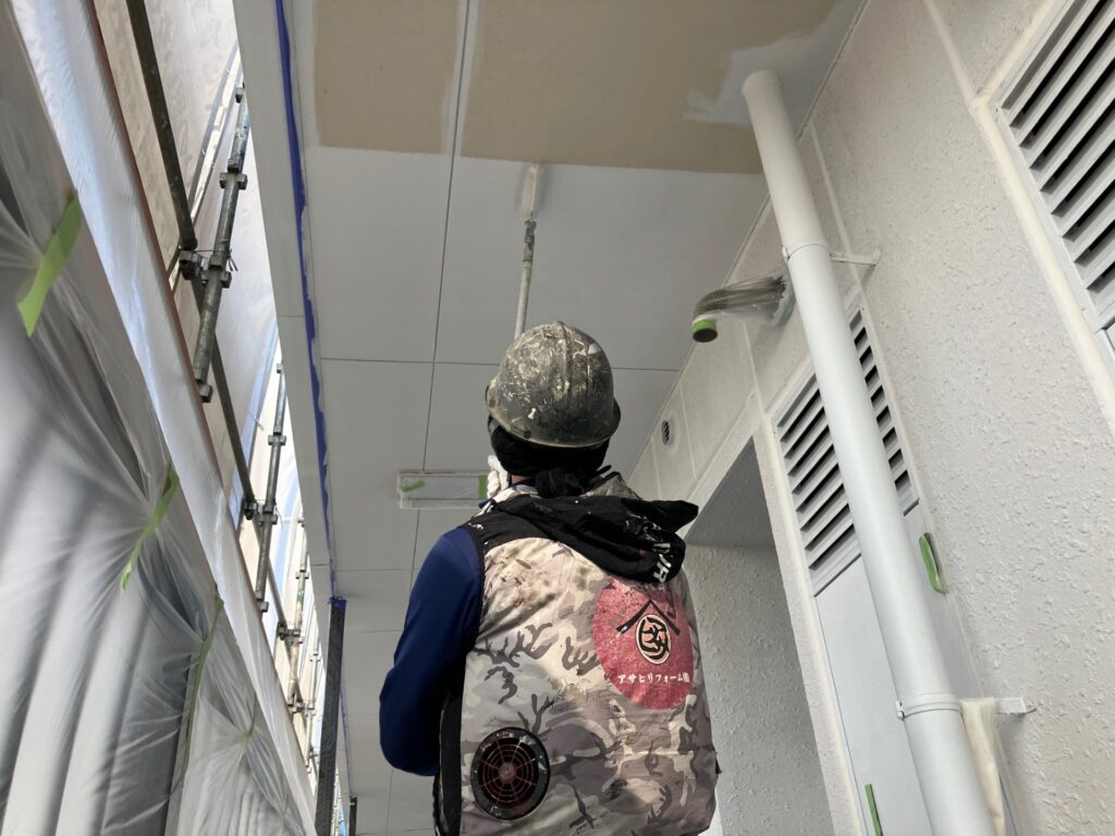 【マンション 軒天塗装】パテ処理までして仕上げキレイ〈草加市稲荷〉