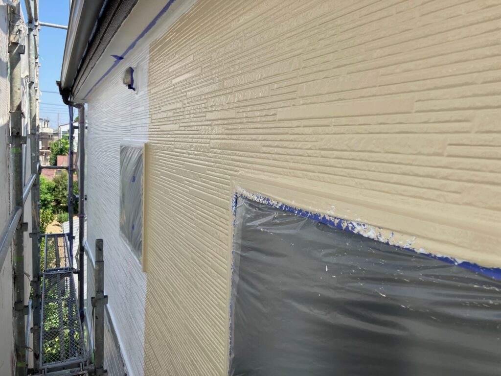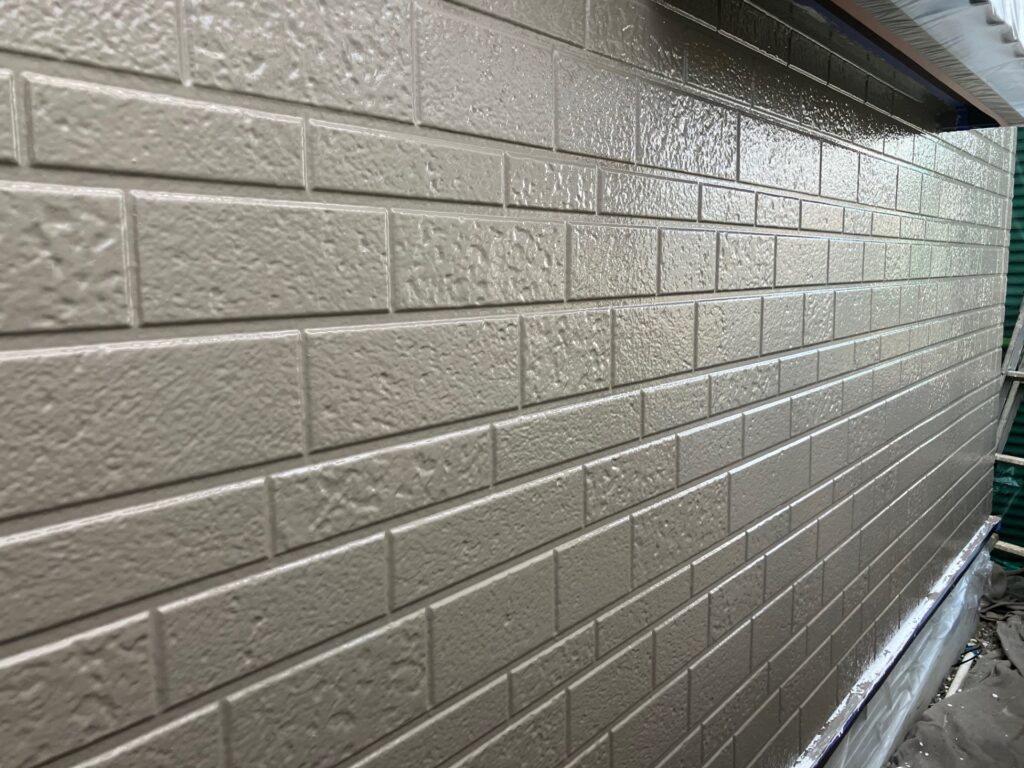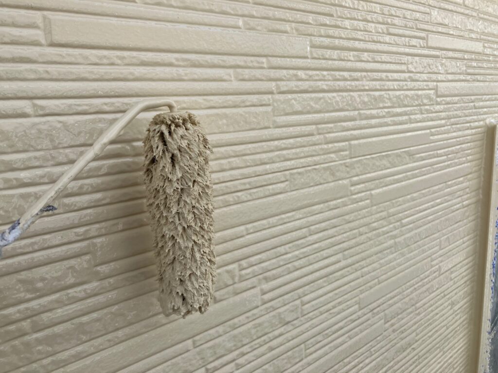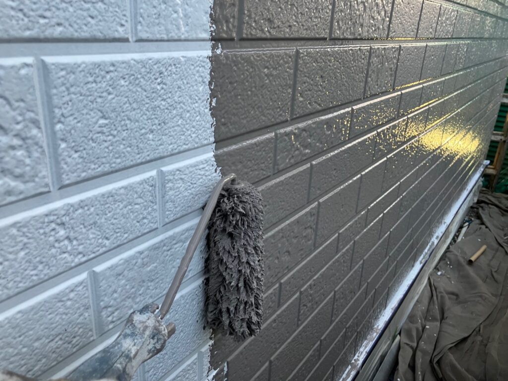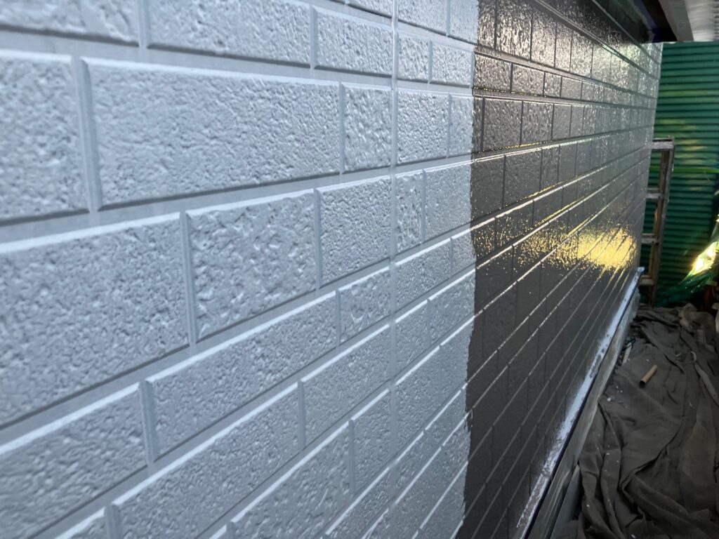 下はタイル調のサイディングで、塗料の掠れやダレができやすいので、その点に気を付けて塗装します。