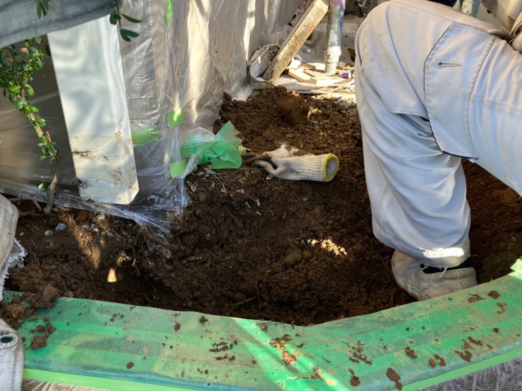 大工さんが土を掘り、中で何がつまっているのか見てくれました。