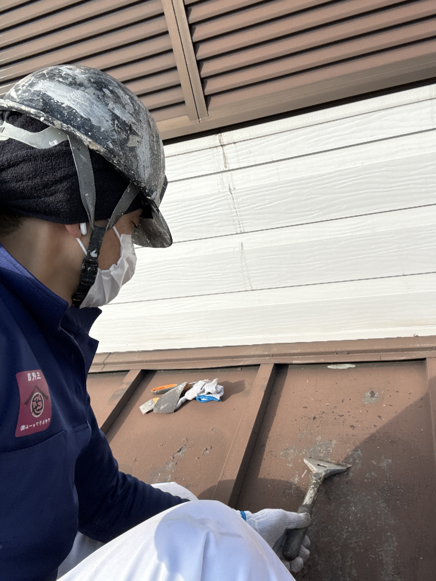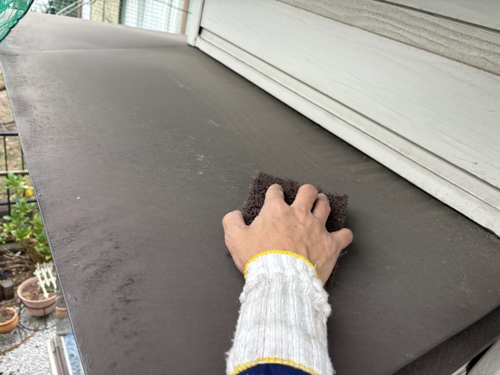 屋根の汚れや前回の古い塗料が捲れてきているところやのでしっかりと取り除きます!