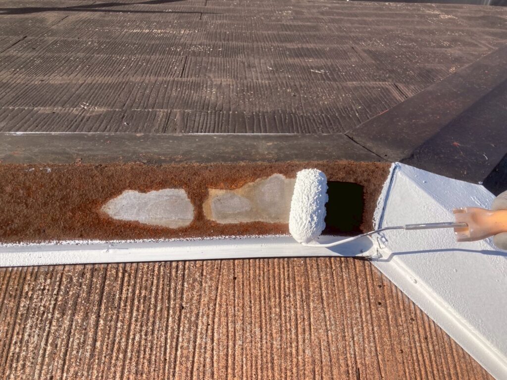 シーリングが終わったら、棟板金にさび止め(下塗り)を塗装します。
