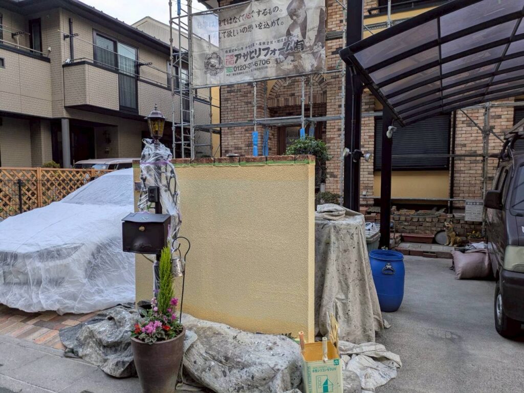 今日は越谷市赤山町の現場で擁壁の中塗りをしてきました!