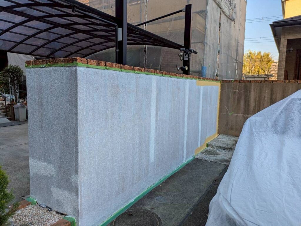 今日は越谷市赤山町の現場で擁壁の仕上げ塗りをしてきました!