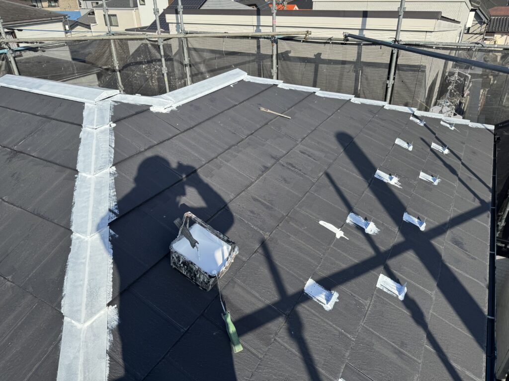 本日も、草加市八幡町の屋根塗装の様子をご紹介させていただきますね。
