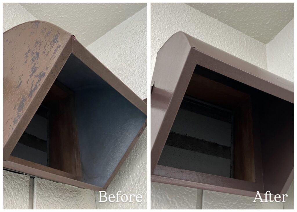 この間ブログで、下塗りまで載せた雨樋や雨戸等の中塗り~上塗り(仕上げ塗り)までをお見せします!