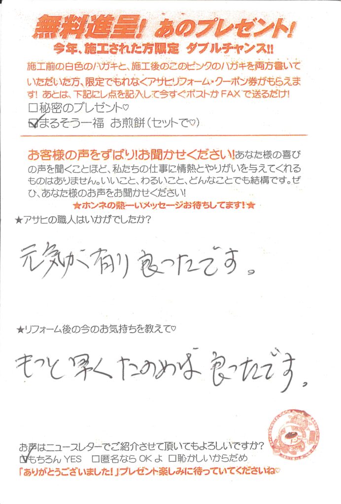 Q.アサヒの職人はいかがでしたか?