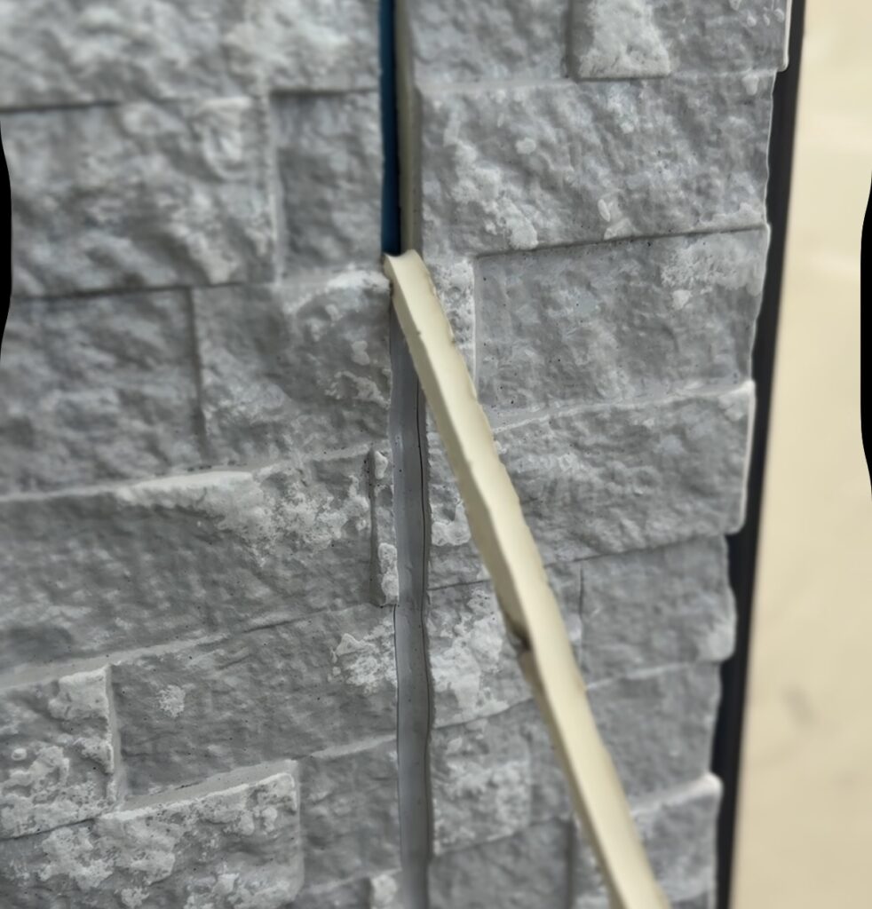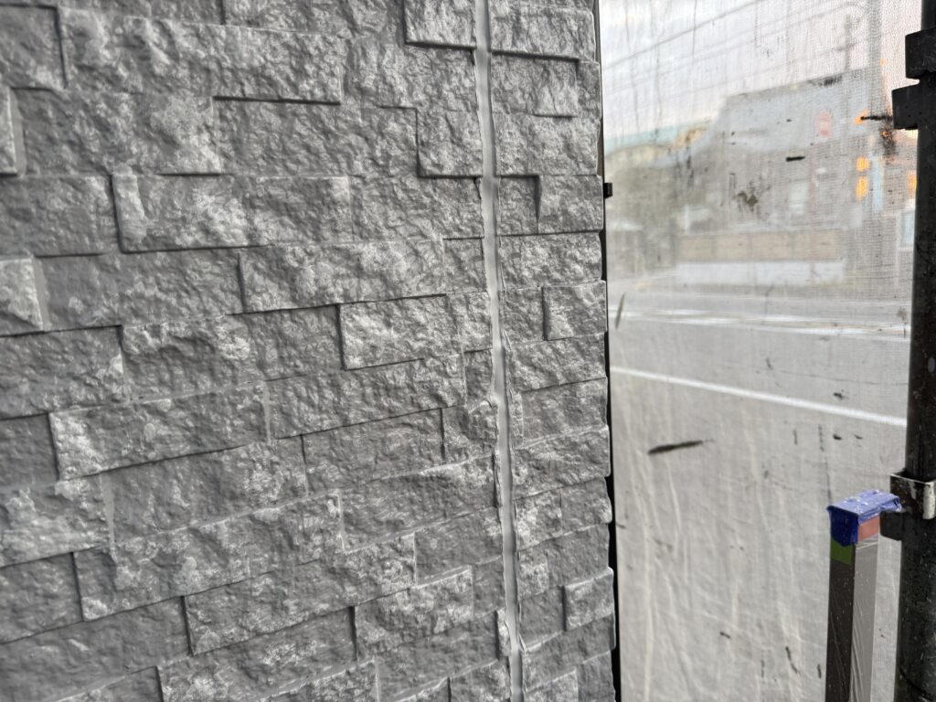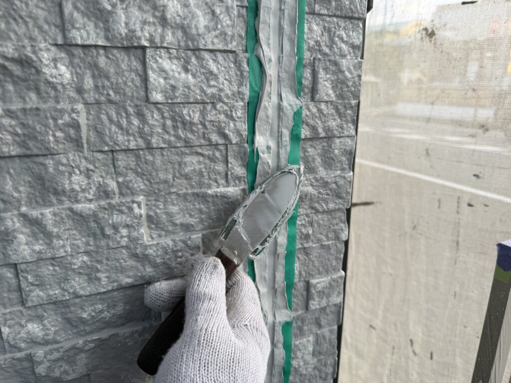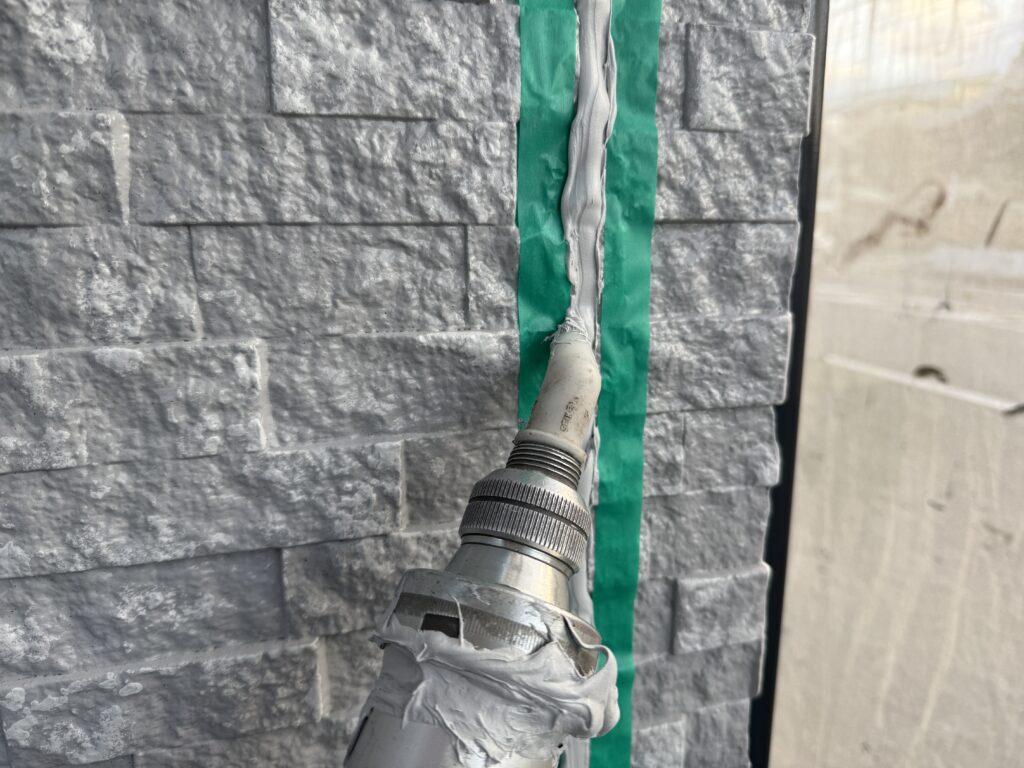本日は、多彩色塗装における、仕上げシーリング施工。