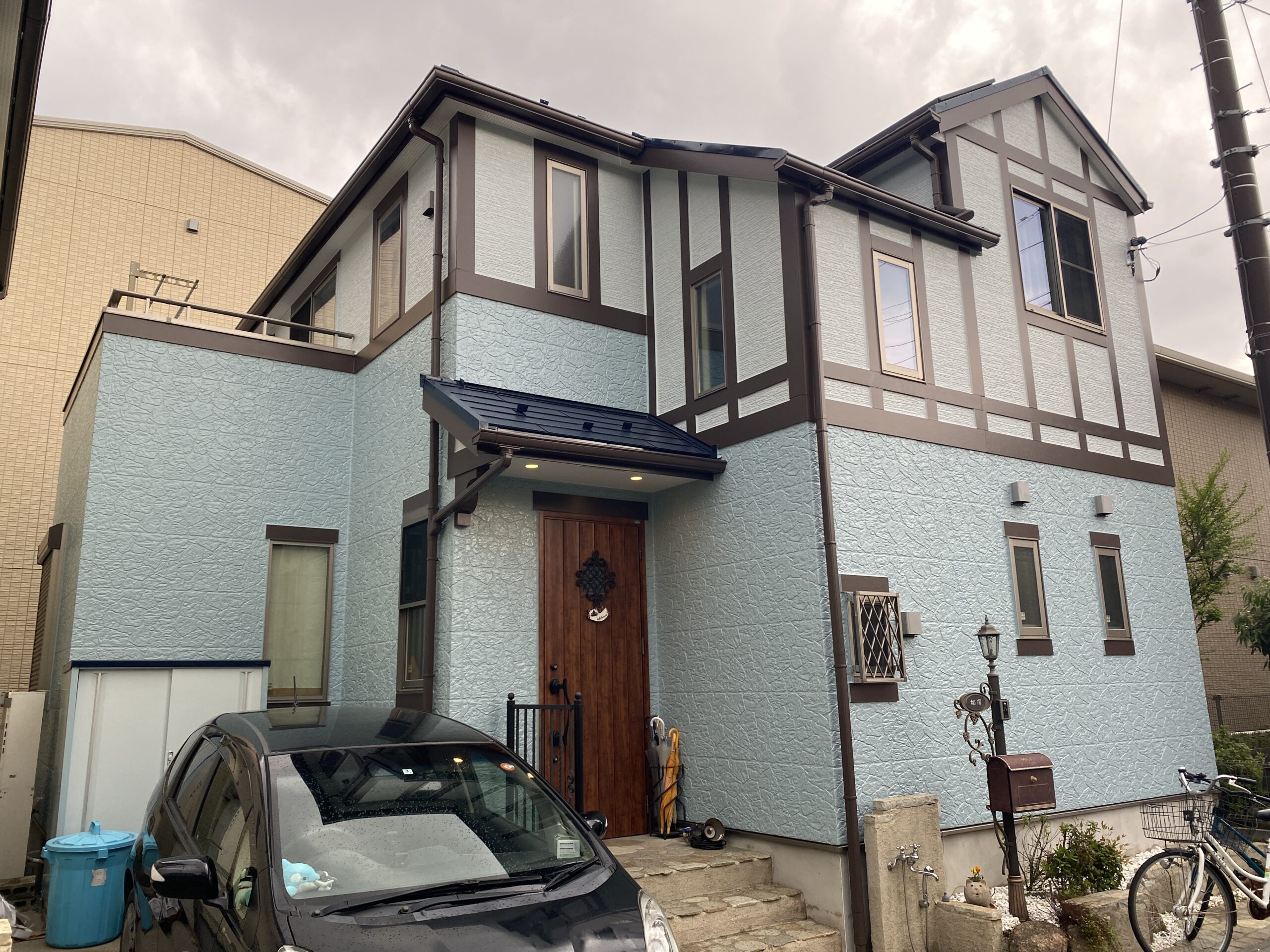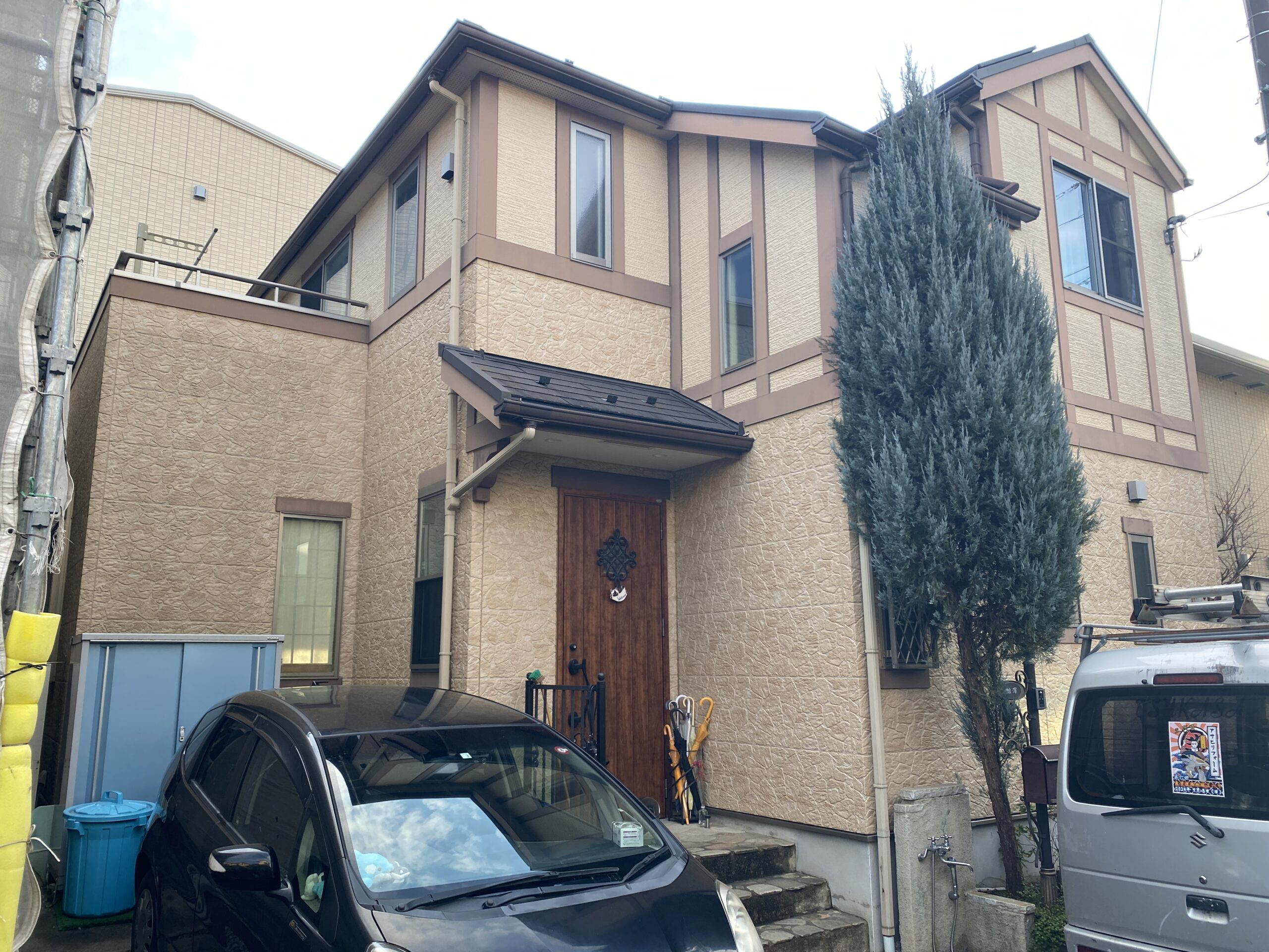 外壁塗装築12年サイディング壁・コロニアル屋根の塗装越谷市蒲生愛宕町在住 新規顧客さま宅 完成!施工後施工前施工内容内訳施工場所越谷市蒲生愛宕町築年数12年塗替え回数初めての塗装工事種類外壁塗装工事屋根塗装工事坪数(塗面積)38坪使用した塗料ピュアピュアシリコン ex*外壁SHANGRIーLA ex:*屋根デザイン塗装外壁…①シャンパンローズマリー ②グレイスローズマリー屋根…サファイアネイビー保証7年保証無料お見積はこちら
