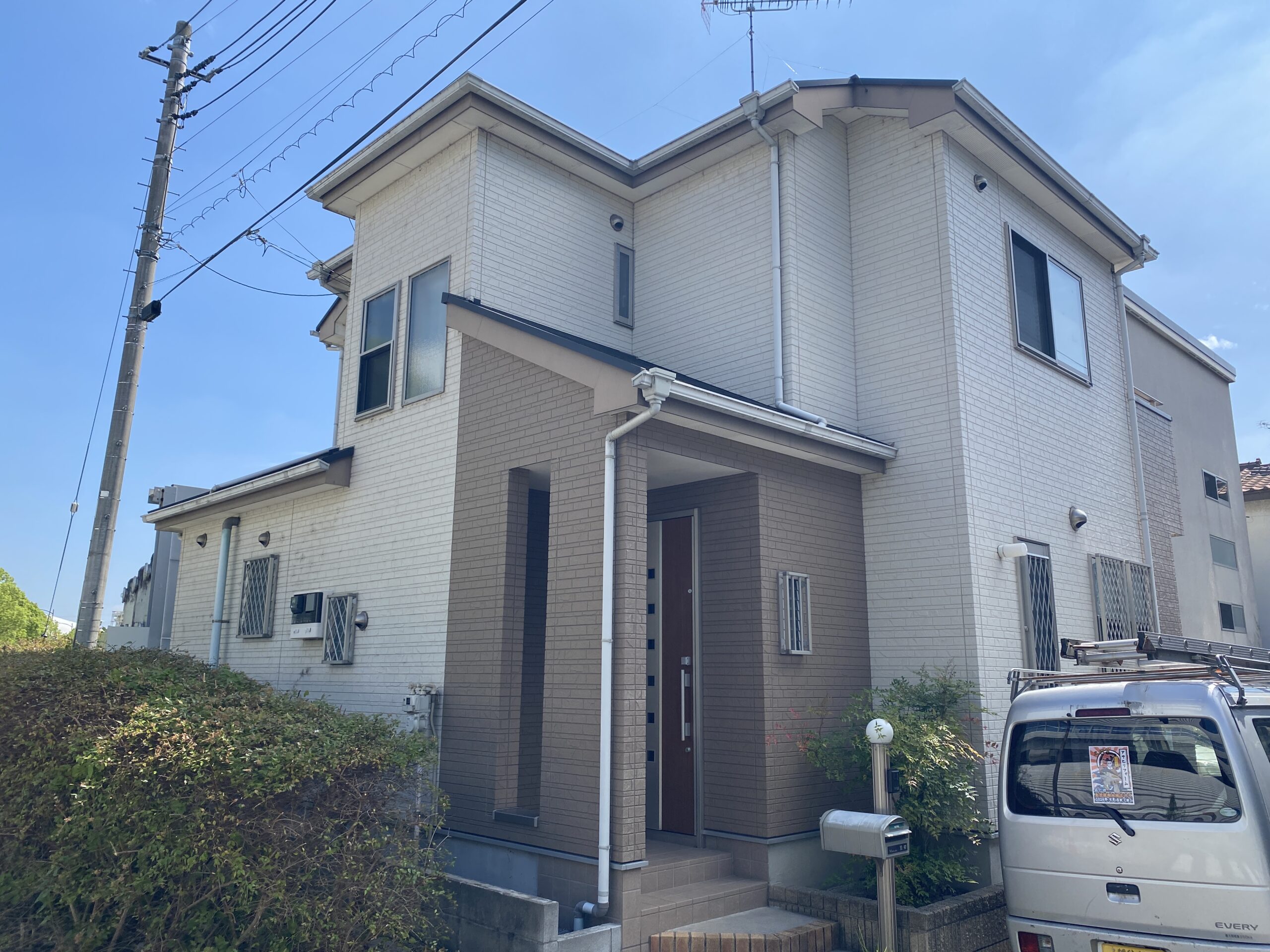 外壁塗装築13年サイディング壁・コロニアル屋根の塗装草加市中根在住 新規顧客さま宅 完成!施工後施工前施工内容内訳施工場所草加市中根築年数13年塗替え回数1回目塗装工事種類外壁塗装工事屋根塗装工事坪数(塗面積)36坪使用した塗料パーフェクトトップ*外壁ピュアピュアシリコン ex*屋根デザイン塗装外壁…ND050屋根…ミッドナイトブラウン保証7年保証無料お見積はこちら