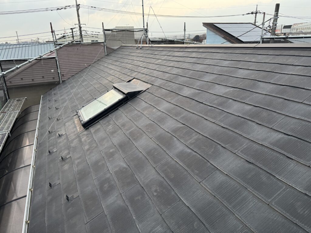 トップライト含むその他の塗らない場所をビニールで囲って(養生)から塗装していきます!