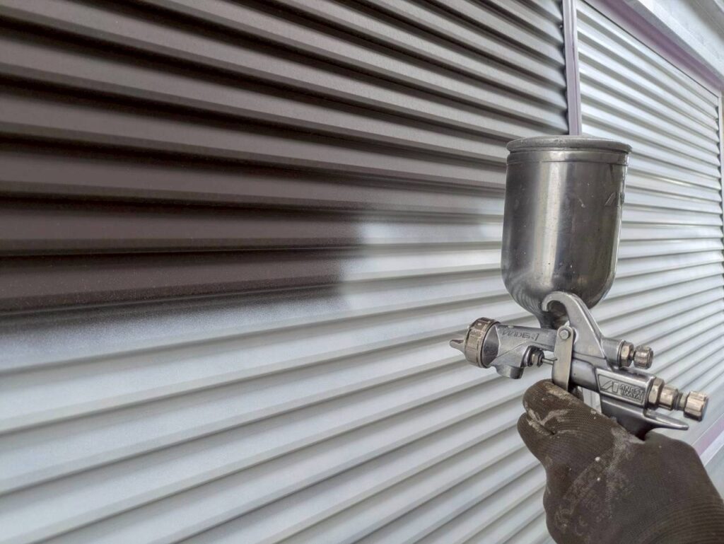 今日の作業は雨戸の吹付けです。