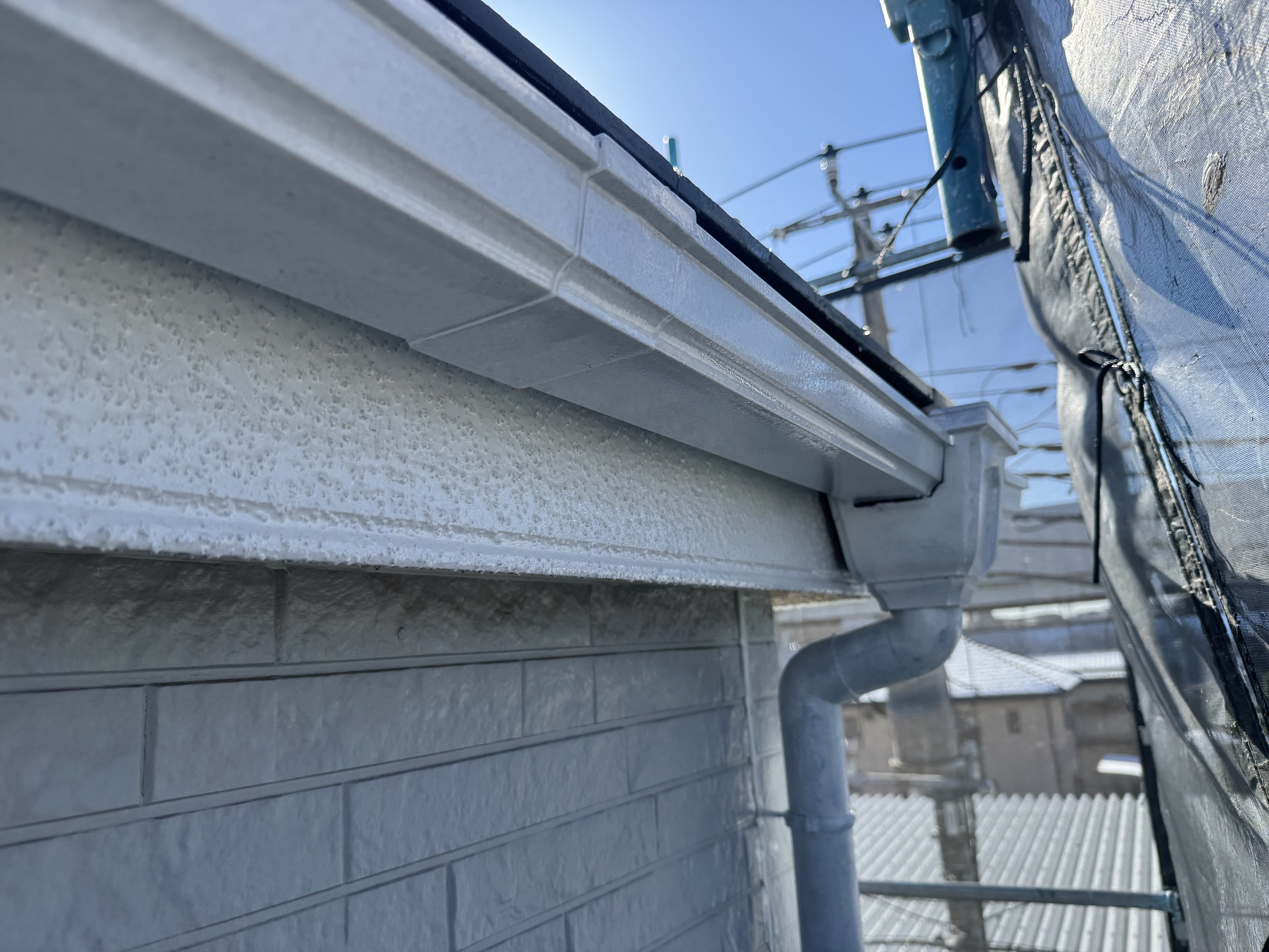 今日は、昨日の続きで、雨樋の塗装(中塗り)をいたしました。